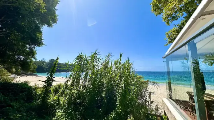 Restaurante ecolóxico aberto na tempada de verán para gozar da vida mariñeira na espectacular praia de Lapamán. Cociña da Terra co solpor máxico do Morrazo.