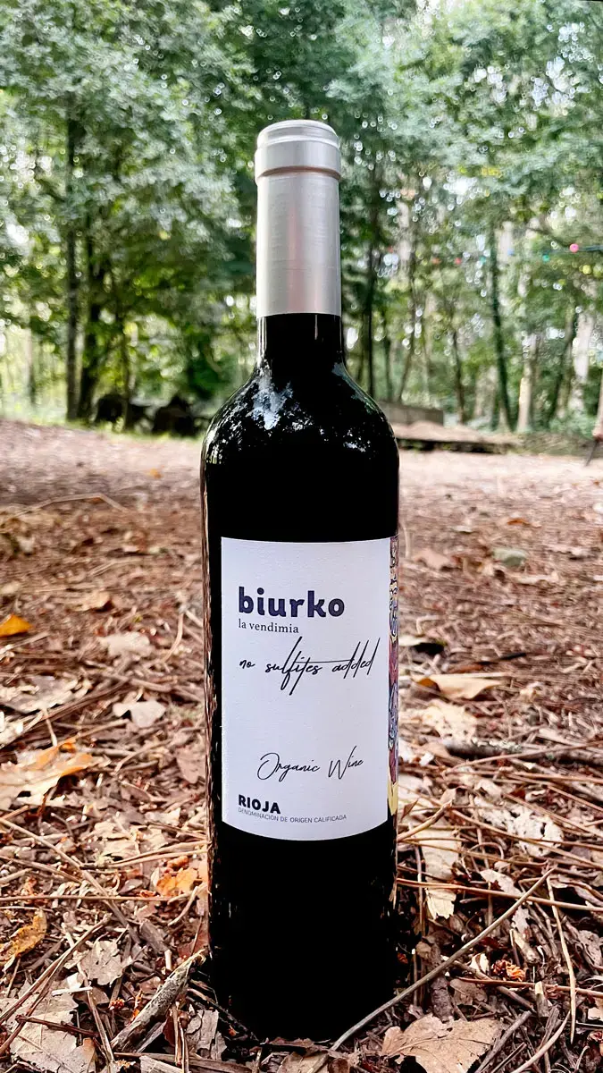 Viño tinto ecolóxico Biurko, termo de orixe euskera que significa "zona de dúas augas", que é como os veciños de Bargota, denominan unha paraxe formada por dúas ladeiras e un val do que procede este viño.