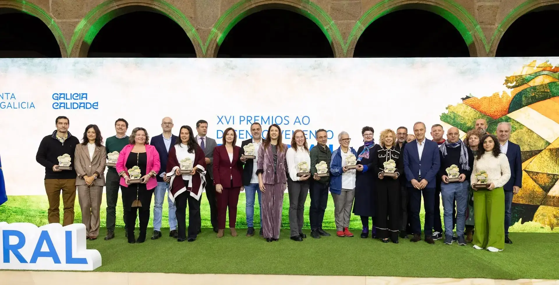 Os XVI Premios AGADER reuniron nesta edición máis de corenta candidaturas procedentes de toda Galicia, unha mostra da vitalidade e diversidade de iniciativas que están a impulsar o desenvolvemento do noso rural. A entrega de premios celebrouse no Hotel San Francisco, en Santiago de Compostela, o pasado 28 de novembro de 2025.