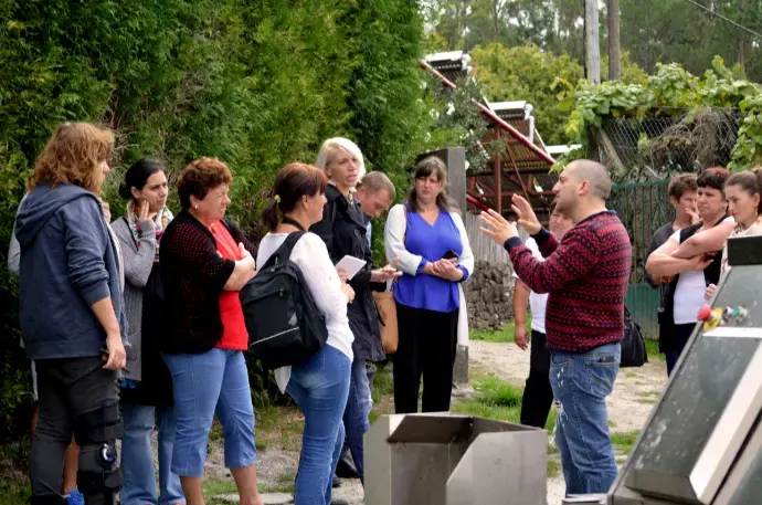 Na imaxe Xosé Santiso explicando o funcionamento da compostadora