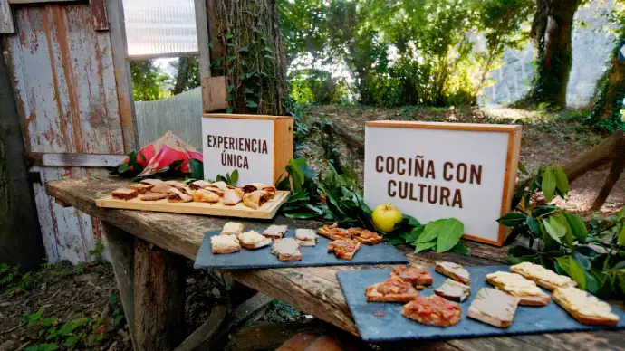 O noso concepto de "Cociña con Cultura" cobra vida nun espectáculo e showcooking á galega. Cociñamos o noso propio produto ecolóxico nas chamas do lume dos Druídas.