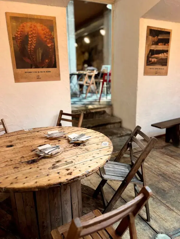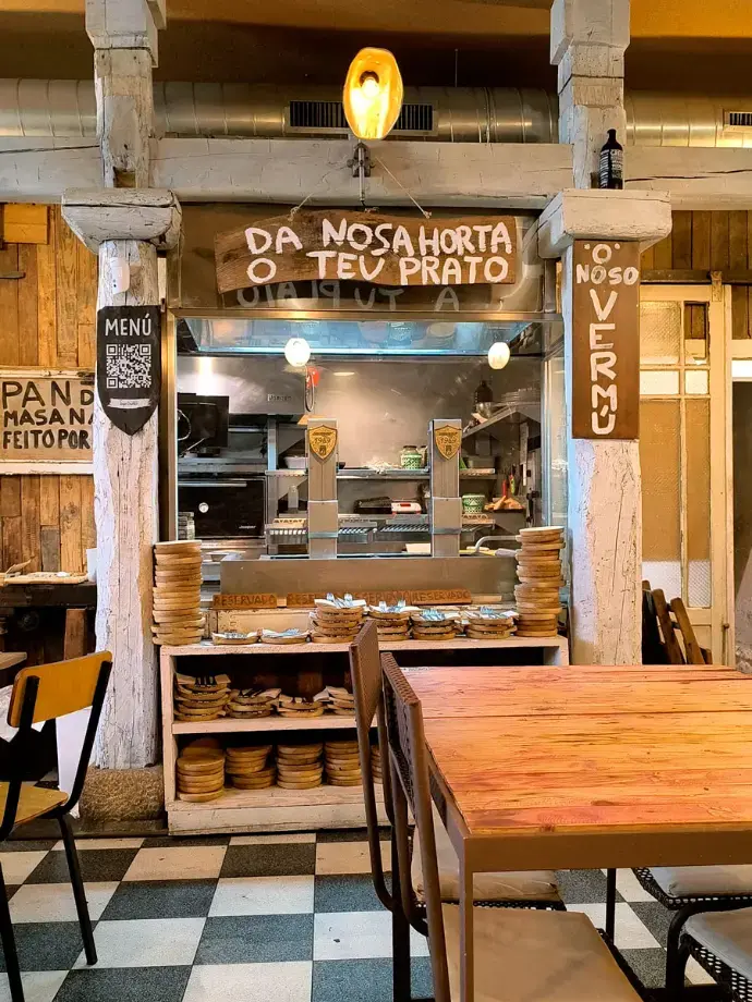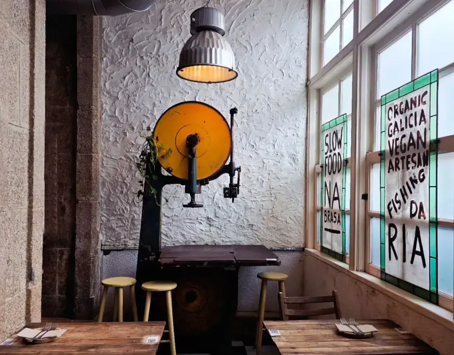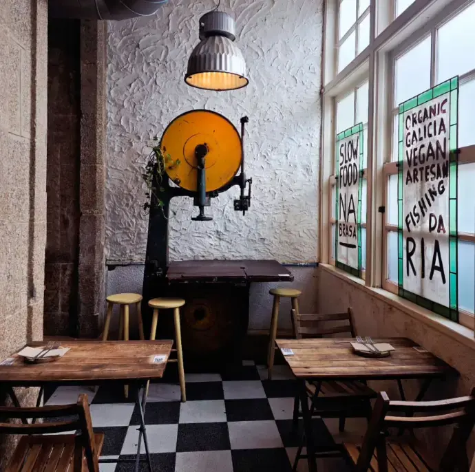 Situado na emblemática Rúa do Franco, a poucos metros da Catedral, somos o único restaurante farm to table da cidade e non somos un restaurante convencional. O noso local está ambientado e recuperado mediante técnicas de bioconstrución e ecodeseño. Aproveitando materiais orixinais, orgánicos de proximidade e dando unha segunda vida a elementos antigos que aportan un carácter auténtico e diferente.